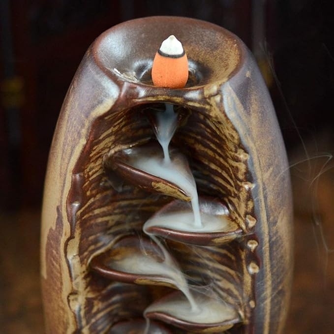 Crea un ambiente de calma y tranquilidad. La cascada de humo combina el aroma del incienso con un efecto visual hipnótico, ideal para relajarte, meditar o darle calidez a tu espacio.